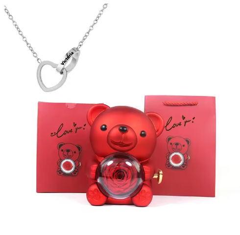 Pudełko na biżuterię z wiecznym misiem różowym z naszyjnikiem