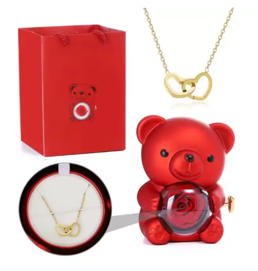Pudełko na biżuterię z wiecznym misiem różowym z naszyjnikiem